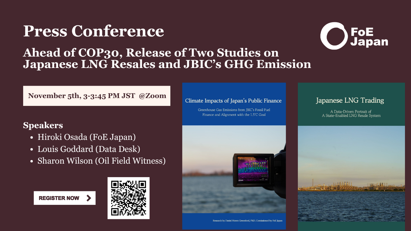What: Press Conference — Ahead of COP30, release of two studies on Japanese LNG resales and JBIC’s GHG Emission
