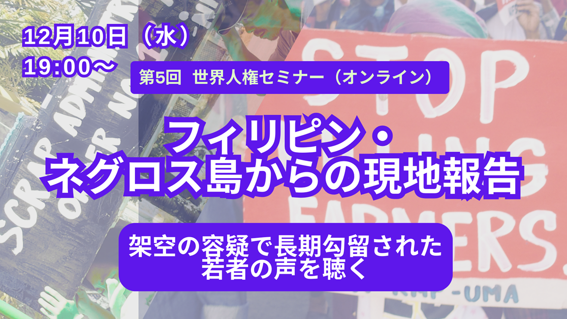 【第5回 世界人権セミナー】フィリピン・ネグロス島からの現地報告:架空の容疑で長期勾留された若者の声を聴く