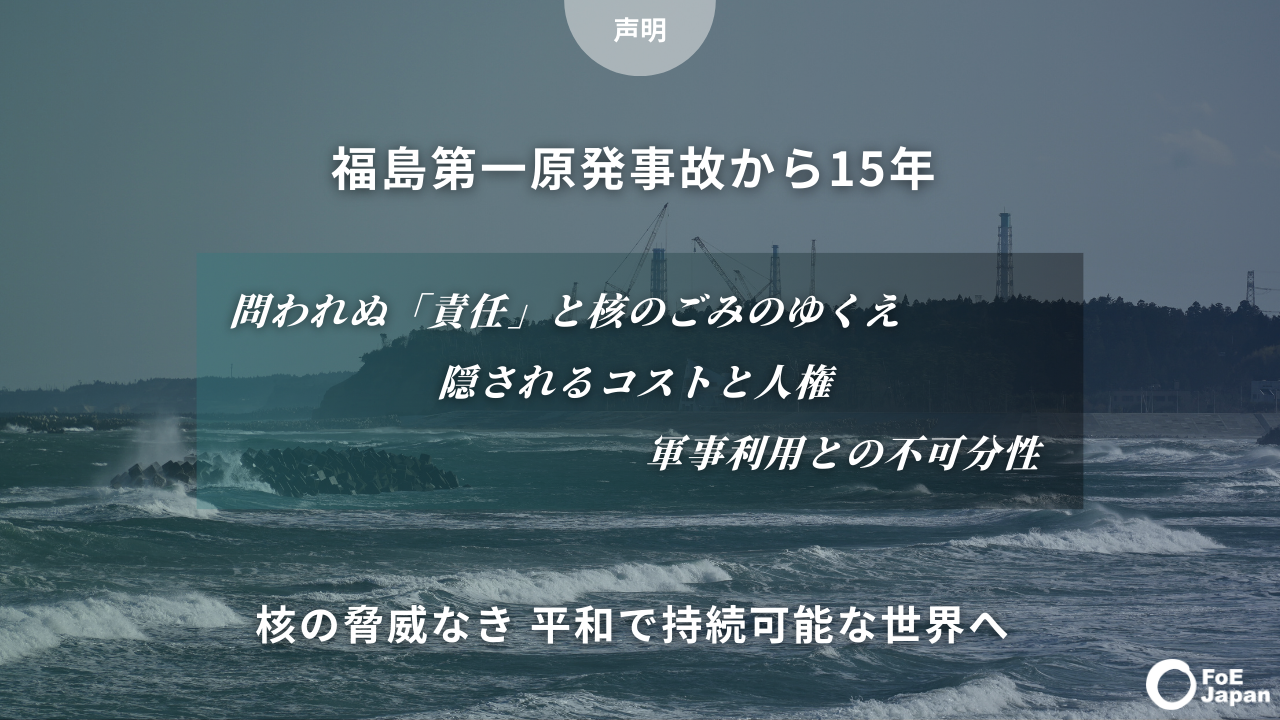 【声明】福島第一原発事故から15年:核の脅威なき、平和で持続可能な世界へ~東電の責任、核のごみ、そして軍事転用リスク。混迷する時代に問う原子力の是非