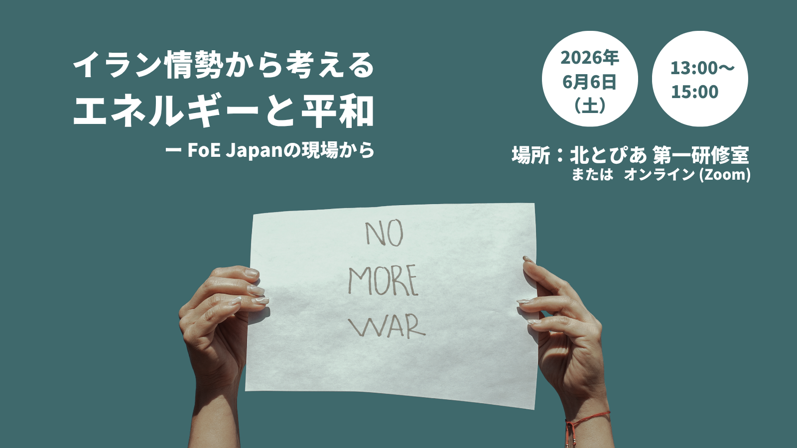 戦争、核の保有、拡大する化石燃料投資、そして気候危機―これらの問題は深く結びついています。本イベントでは、FoE Japanの活動から見えてくる現場の声をもとに、社会の大きな動きと私たちの暮らしとのつながりを考えます。