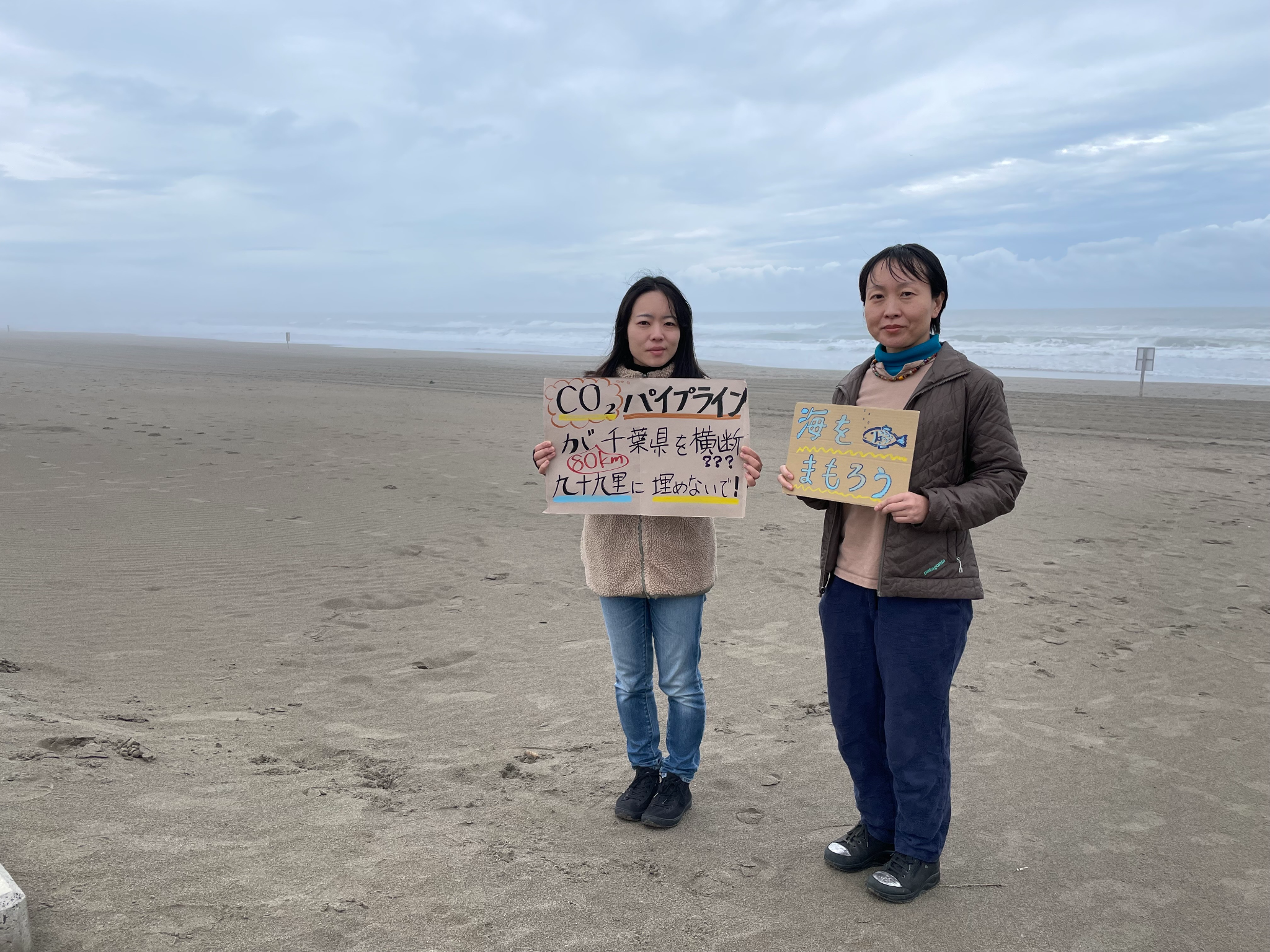 12月21日の説明会の前に、白里海岸にて。深草亜悠美、吉田明子