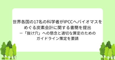 世界各国の17名の科学者がIPCCへバイオマスをめぐる炭素会計に関する書簡を提出-「抜け穴」への懸念と適切な算定のためのガイドライン策定を要請