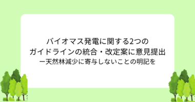 バイオマス発電に関する2つのガイドラインの統合・改定案に意見提出~天然林減少に寄与しないことの明記を