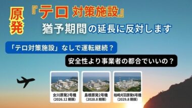 しかし、いったん再稼働した原発も、停止を余儀なくされることが相次いでいます。川内原発、高浜原発の4基は、テロ対策施設(特定重大事故等対処施設)の建設の遅れにより、2020年には停止に追い込まれました(その後、川内原発は再稼働)。定期点検中の伊方原発3号機は、広島高裁による運転差し止め判断で、定期点検が終わっても運転再開できていません(2021年3月18日、広島高裁が差し止めを取り消し)。また、2020年12月4日、関西電力大飯原発3・4号機をめぐり、大阪地裁は国に設置許可の取り消しを命じる判決を出しました。国は控訴し、判決は確定していないため、ただちに大飯原発の運転が止まるわけではありませんが、今後、全国の原発に波及する可能性があります。