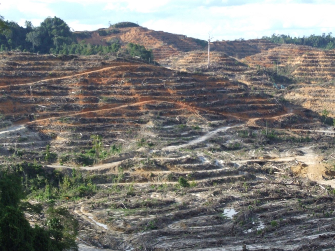 (写真上:パームプランテーションのために造成された土地。マレーシア・サラワク州)