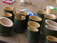 お昼の準備でもしようか。とTさんが味噌汁を作ってくれました。竹を伐り出して、お椀とお箸もつくることに。竹のお椀でいただく味噌汁はおいしい!と大好評でした。